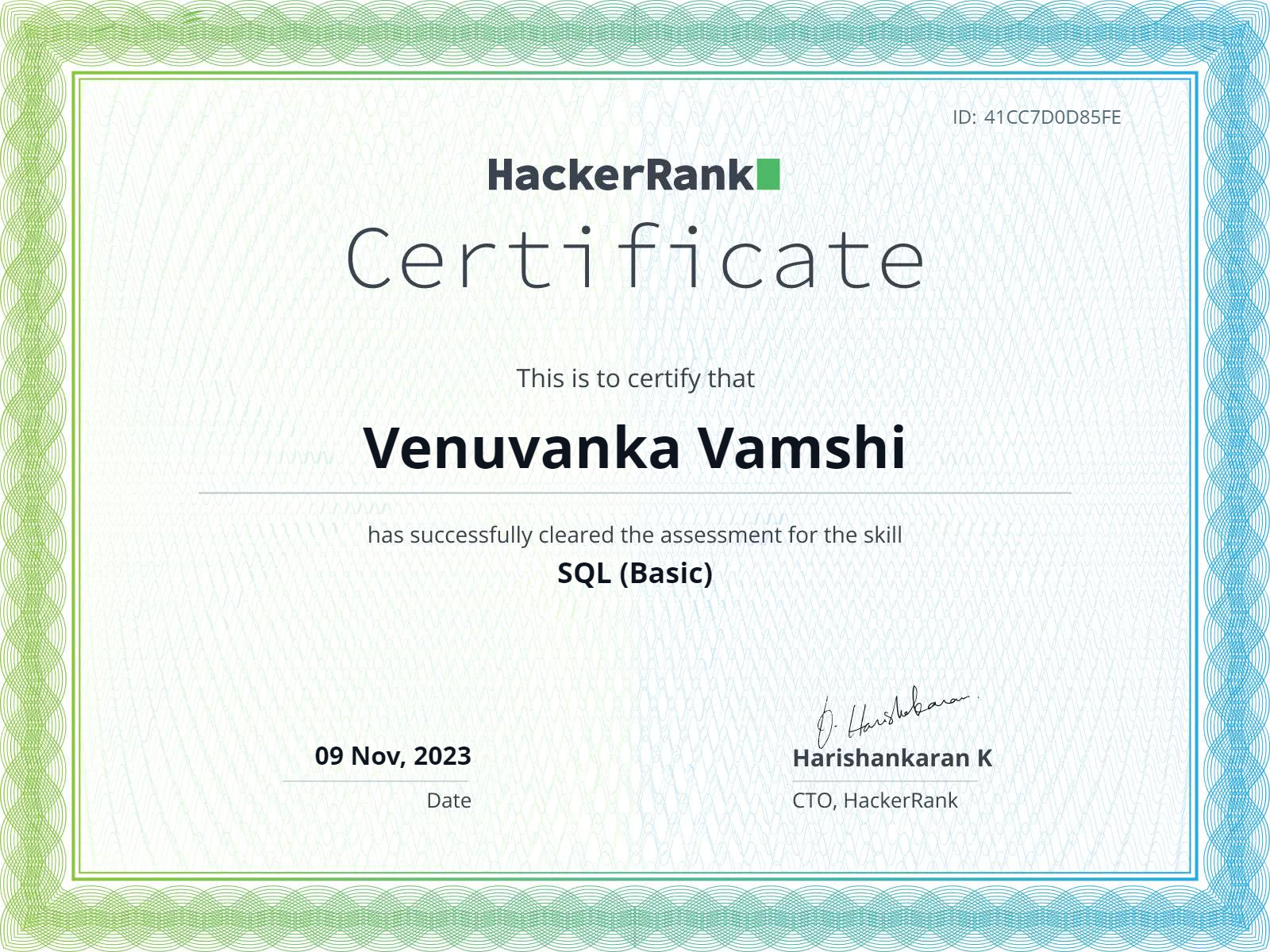 SQL( Inter mediate leve) Certificate by Hackerrank